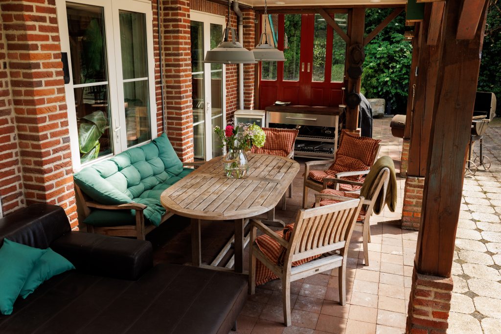 Vanuit de woonkamer heb je via openslaande deuren toegang tot de achtertuin waar je kunt genieten onder de veranda met uitzicht op de prachtige achtertuin.